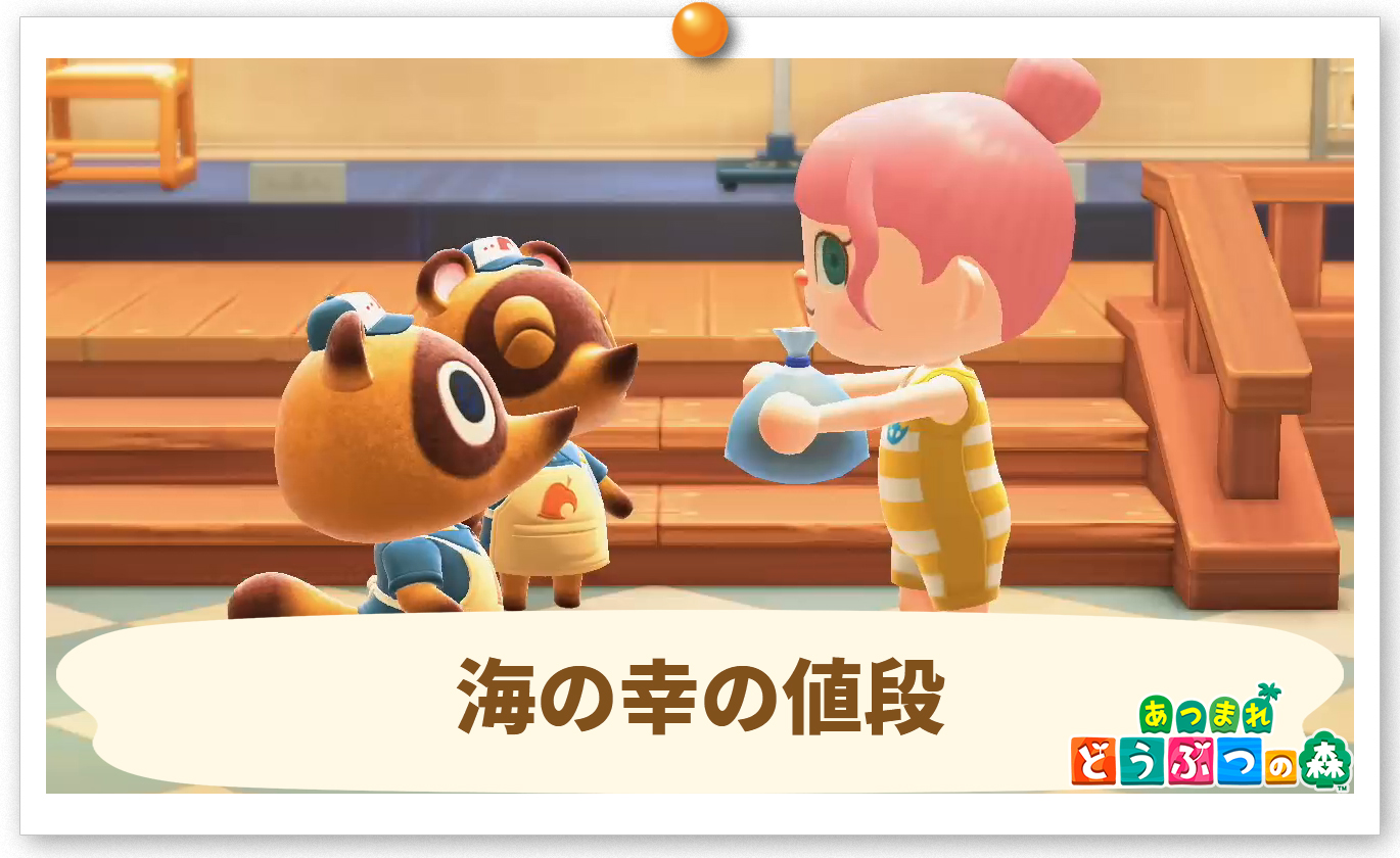 ホタテから真珠がとれる確率は、何と20万分の1ほど。ラコスケにホタテを渡すと、別れ際に哲学的なセリフ言って海の中に消えていきます。 セリフは、ホタテを渡すたびに変わります。売値が最も高い魚は15000ベルです。 また、ジャスティンに売ると22500ベルで売却することができるので、乱獲したらジャスティンに売って金策しましょう。