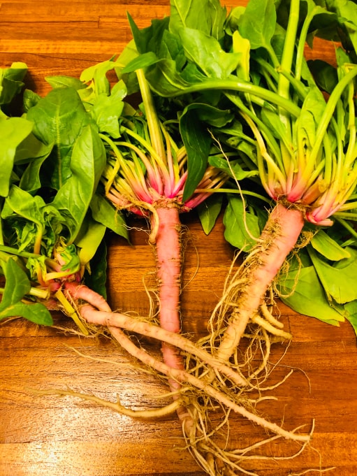 ほうれん草の根元が赤いのは、「マンガン」というミネラル分が豊富に含まれているからなんです。 マンガンは骨の形成にかかわる栄養素で、健康を維持するのに欠かせないミネラルの一種。 さまざまな酵素を構成する成分なんですよ。 しかも、ほうれん草は根元の赤みが強いほど甘みも強いんですよ!