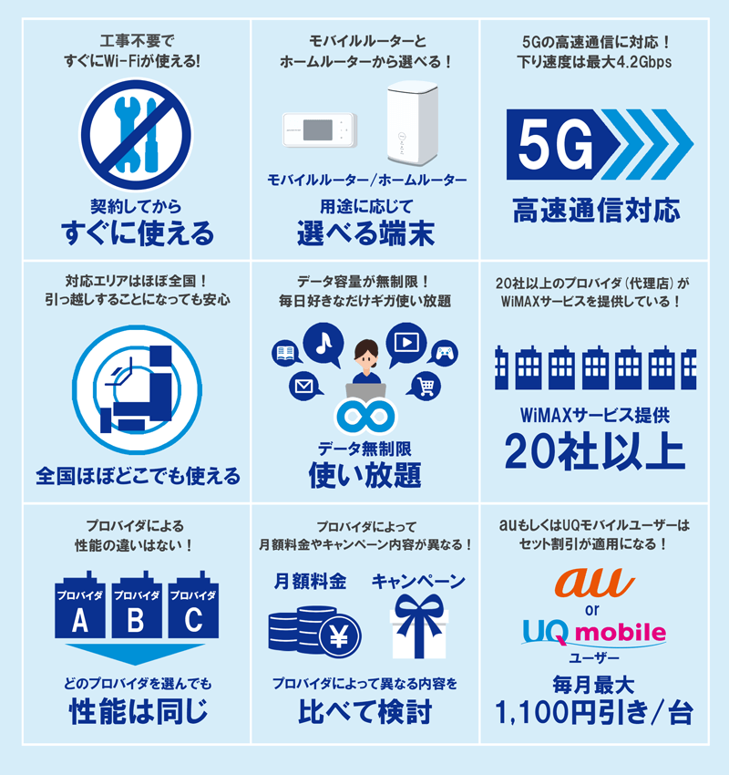 最高速度は4.2Gbps. 2024年3月現在、WiMAX+5Gに対応している端末はモバイルルーターのX12・X11・SCR01、ホームルーターのL13・L12・L11の6種類です。WiMAXのデメリットは、 最安ではない という点です。 WiMAXはキャリアのポケット型WIFiよりも安く、クラウドSIMのポケット型WiFiよりも高い価格設定になっています。 ただし、クラウドSIMのポケット型WiFiは無制限プランがない・4Gしか使えないなどのデメリットがあるため、注意が必要です。